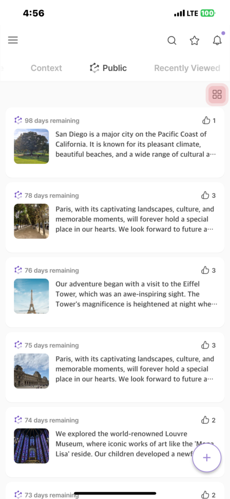 You can browse all pages made public by tapping on the Public browse mode from the Home Menu. You can choose to view public pages in card mode or list mode as shown in images below.