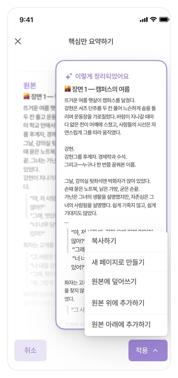 읽기 쉽게 다시 정리하고 싶을 때나, 중요한 내용만 먼저 확인하고 싶을 때 유용합니다.